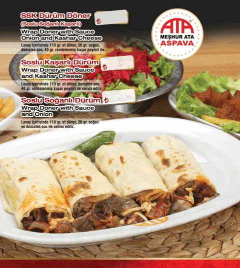 25 yıldan fazla tecrübe ve geleneksel lezzetlerin buluştuğu adres. Ata Aspava, İskender & Döner & Beyti sizi unutulmaz bir deneyim için, mükemmel tatlar için bekliyor.