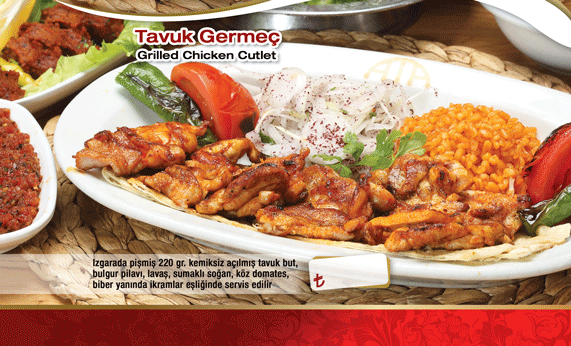 Tavuk Germeç Kebap, Markamızın Kalitesi ve Güvenilirliği İle %100 Yerli Besi ile sizlere sunulmaktadır. Tamamen kendi anlaştığımız firmanın ve bilindik markaların özel yetiştirilmiş tavukları ile eşsiz tam damağınıza göre lezzet.